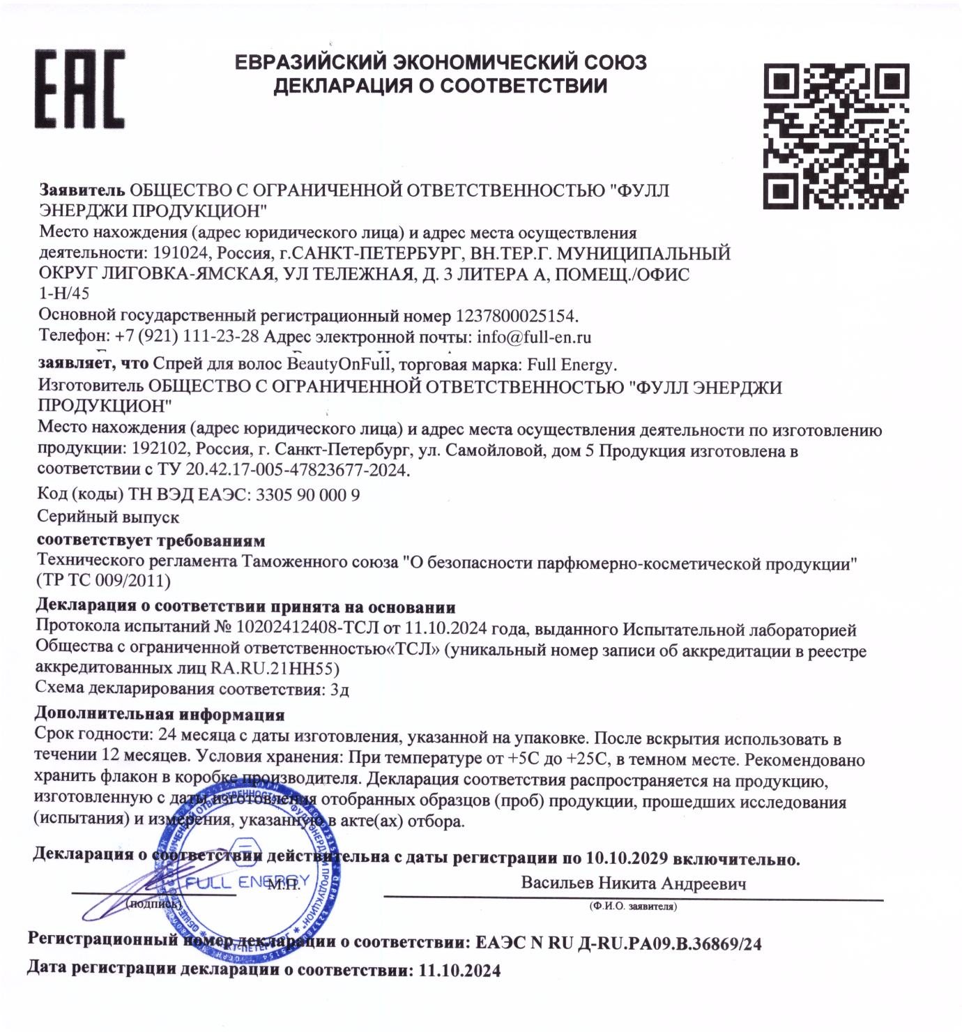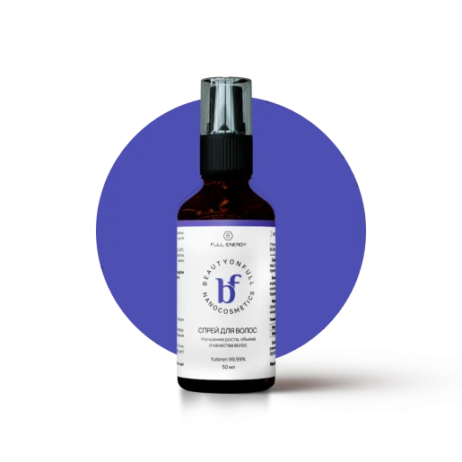 Спрей для волос BeautyOnFull придаст волосам здоровый ухоженный вид с первого применения и надолго сохранит молодость и красоту в вашем ежедневном образе. Благодаря инновационной молекуле фуллерен С60 такой уход окажет мощную антиоксидантную защиту волос и кожи головы, активизирует образование новых волосяных фолликулов и ускорит рост волос, сделает пряди густыми, блестящими и полными жизни.