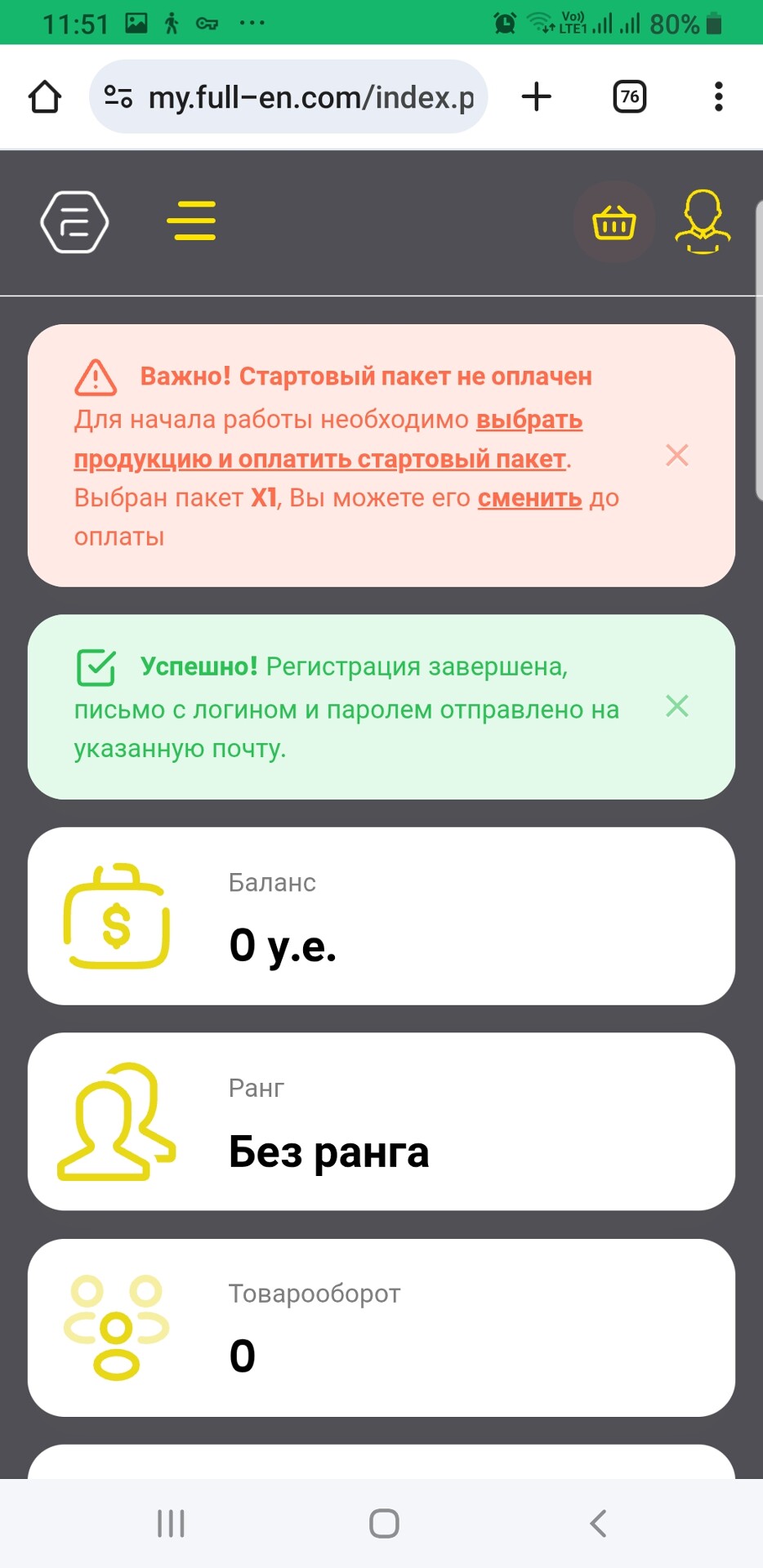 Далее, для выбора продуктов в соответствии с вашим пакетом, пройдите по ссылке "выбрать продукцию и оплатить стартовый пакет" (подчеркнутый красный шрифт).