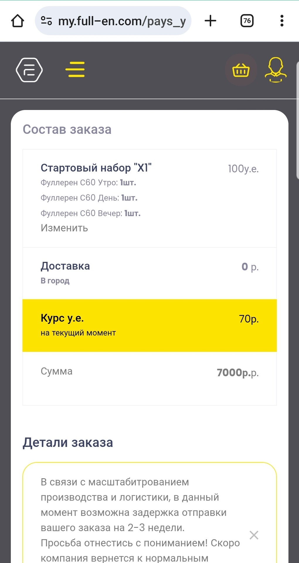 На следующем шаге проверьте состав заказа, также внимательно прочтите комментарий к деталям заказа.