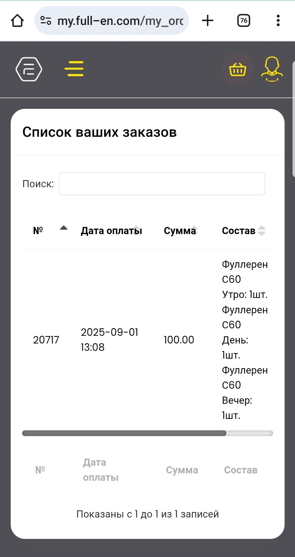 Ваш заказ сразу отобразится в личном кабинете в разделе Меню, заказы, мои заказы.